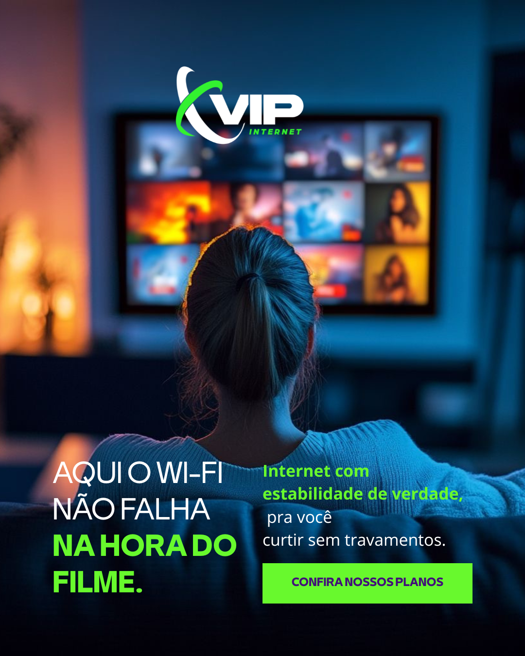 A VIP INTERNET é uma empresa de telecomunicações, voltada para o atendimento de serviço de internet, com sede estabelecida na cidade de Candeias-MG e devidamente licenciada pela à ANATEL, levando até você uma conexão de ultra velocidade via cabos de fibra óptica. VIP INTERNET conectados com o Mundo!!